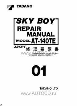 Заводская инструкция по ремонту крана Тадано - Tadano Aerial Platform AT-140TE-1 содержит подробную информацию о сборке и разборке агрегатов, процедур диагностики, электрические схемы, моменты затяжек и др.